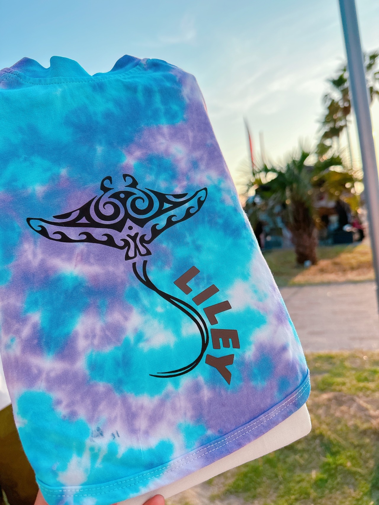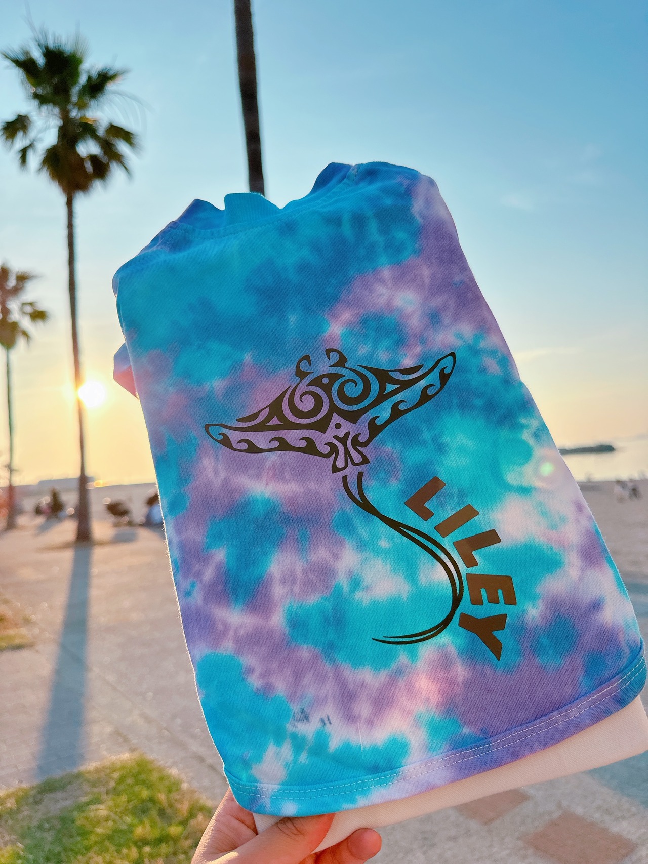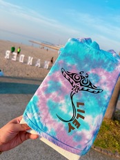 ターコイズ・パープルの2色を使用して染めますが、色の出方はそれぞれで色の配置やバランスなどは指定できません。