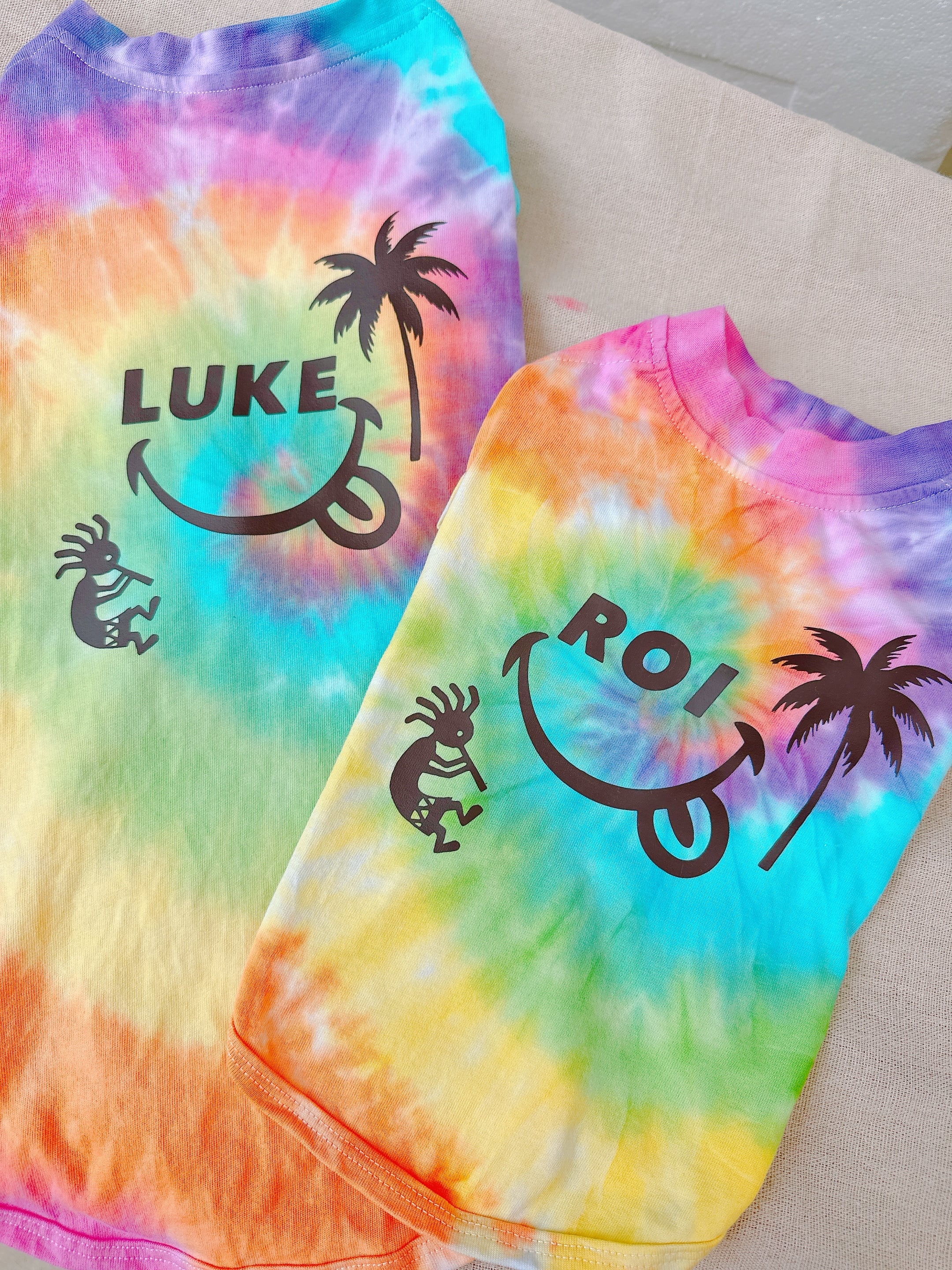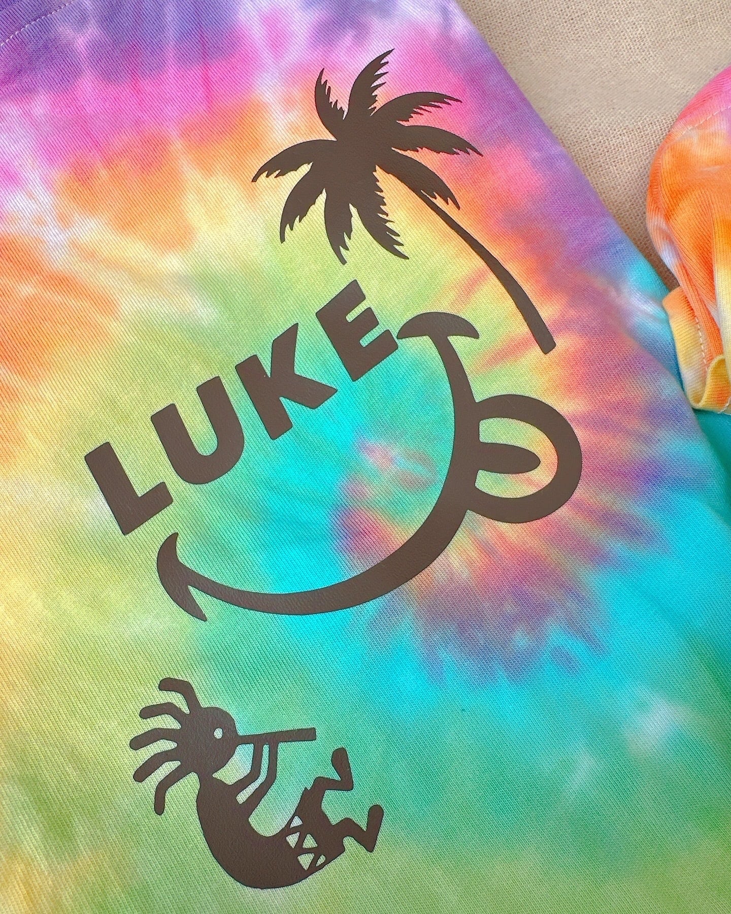 ピンク・オレンジ・イエロー・グリーン・ターコイズ・パープルの6色を使用して染めますが、色の出方はそれぞれで色の配置やバランスなどは指定できません。