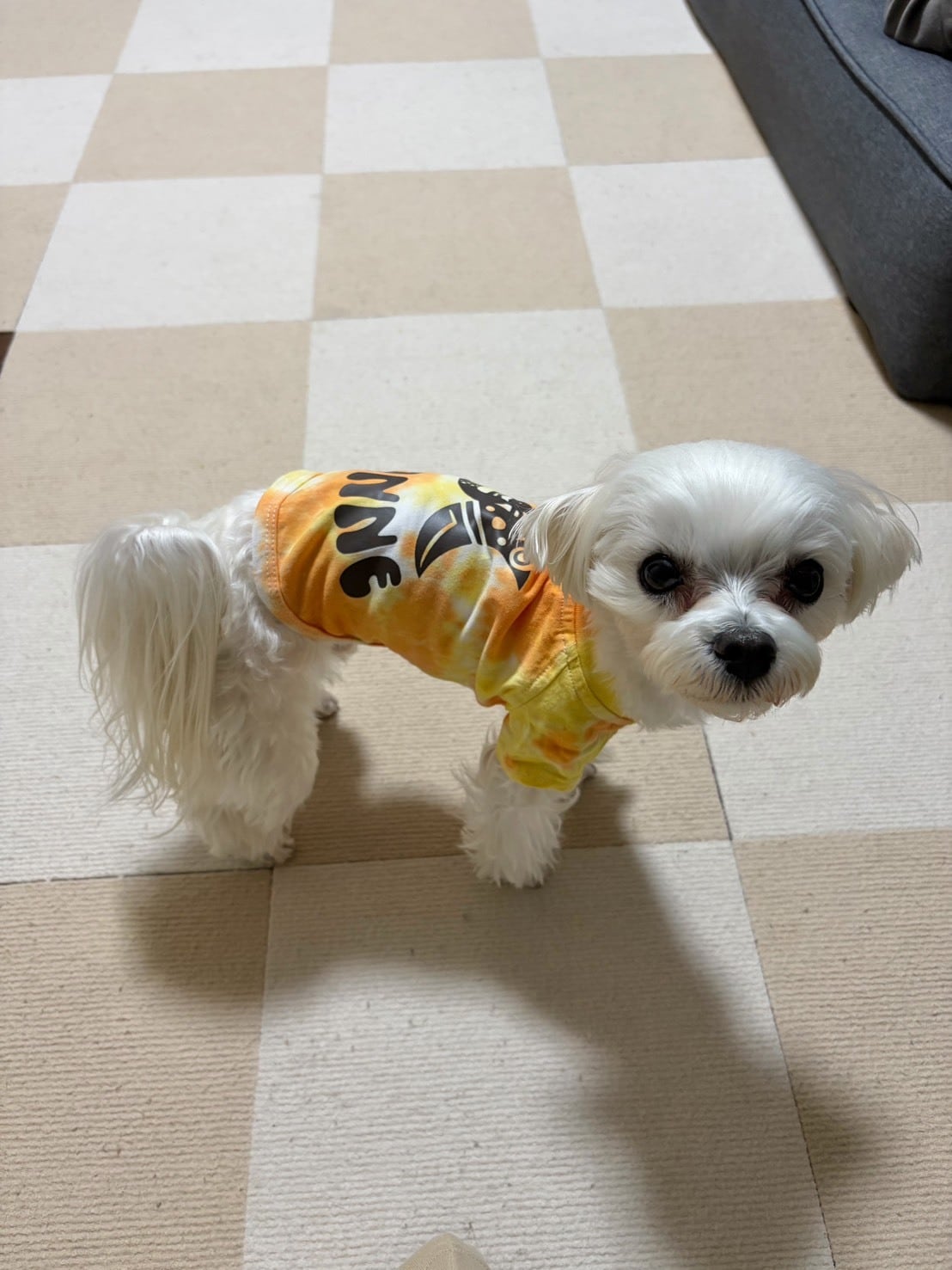 オレンジ・イエローのまだら染め。